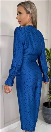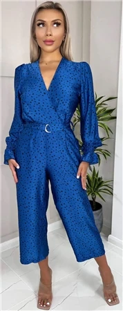 - Blue And Black Printed Wrap Over Elasticated Cuff Belted Jumpsuit