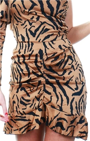 Ax Paris Brown Leopard Print Jumpsuit With Knot Front Detail