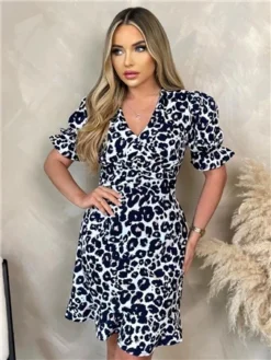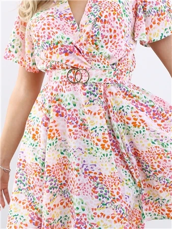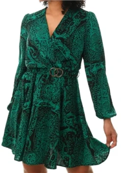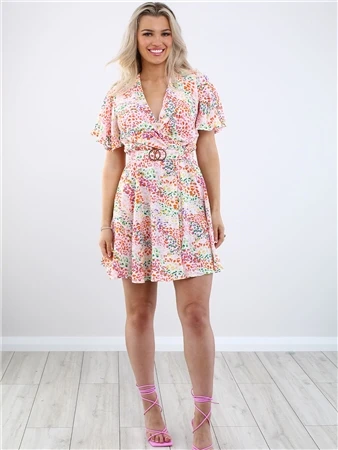 Ax Paris Floral Wrap Top Belted Skater Dress