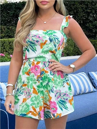 - Our Green Floral Frill Strap Playsuit is a must for your holiday haul