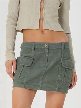 Make them stare this season in our beaut mini skirt! Featuring cord fabric, patch pockets and micro mini length, it’s a staple for the upcoming season