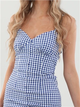 - Blue check pattern