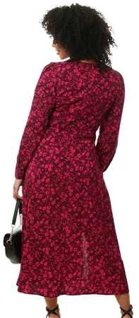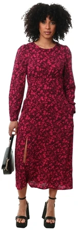 Girl In Mind Black/Pink Ditsy Floral Ashanti Long Sleeve Split Midi Dress