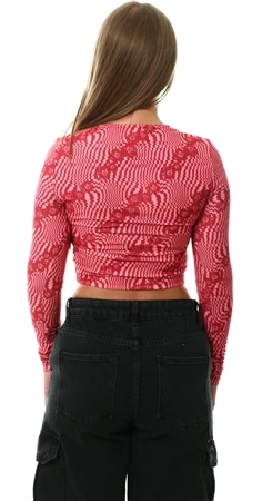 Glamorous Red / Pink Digital Wave Flower Pattern Top