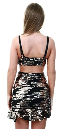 Missi London Black/Gold Sequin Mini Frill Skirt