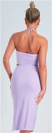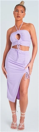 Missy Empire Lilac Paola Ruched Side Split Midi Skirt