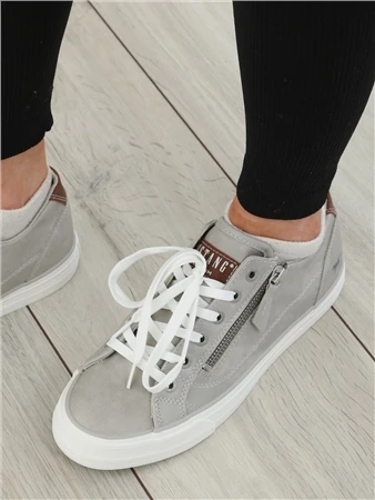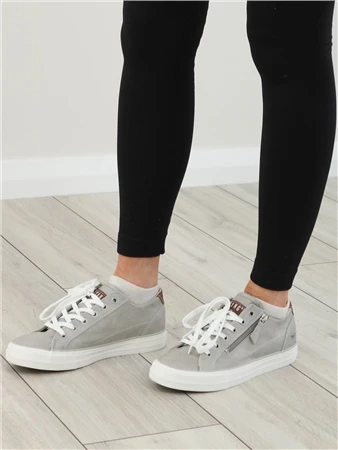 Mustang Light Grey Lace Up Zip Detail Trainers