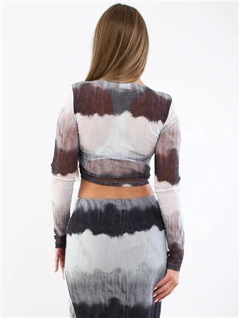Noisy May High Rise / Grey Marbel L/S Top String Detail Top