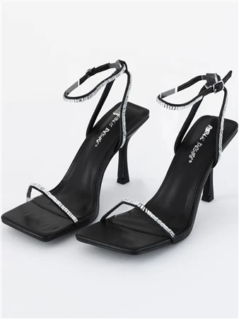 Ready to meet the simple but sexy shoe of your dreams? Introducing the Carla Black PU Diamante Barely There Square Toe Heels! the perfect addition to your shoe collection. Featuring a sleek and minimalist design,the square toe, black PU material and delicate diamante detailing. As the saying goes, “simple is sexy,” and these heels prove just that. Whether you’re dressing up for a night out or adding a touch of class to your everyday attire, the Carla Heels are sure to elevate your look to the next level