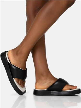 Public Desire Black Vacay Contrast Padded Square Toe Flip Flop Sandals
