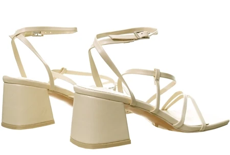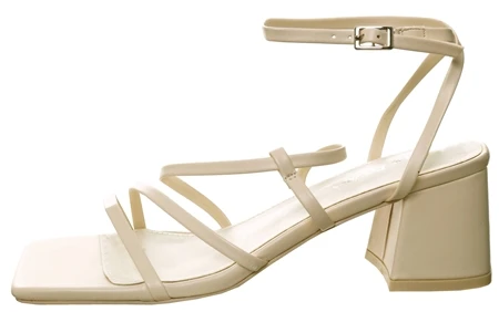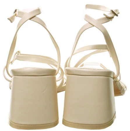 Public Desire Ecru Square Toe Lace Up Block Mid Heeled Sandals