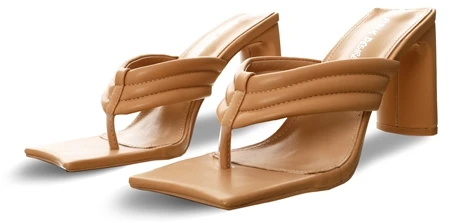 Public Desire Nude Pu Thong Strap Flat Block Heeled Mules