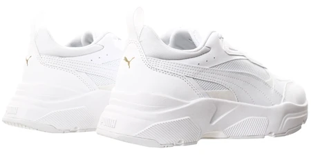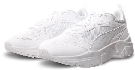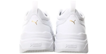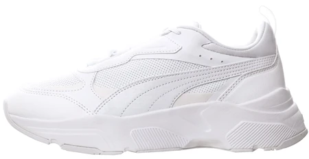 - Mesh upper with oversized leather panels and heat-pressed underlays