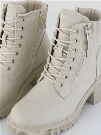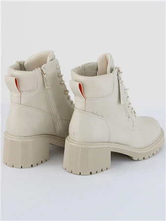 Women’s ankle boots from Refresh. Made of material that imitates leather. Side zip fastening. Lace up and zip details. Chunky sole style