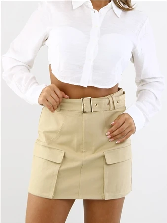 Make them stare this season in our beaut mini skirt! Featuring a belt, patch pockets and micro mini length, it’s a staple for the upcoming season!
