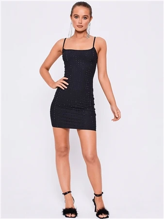 Saint Genies Black Adelaide Strappy Diamante Mini Bodycon Dress