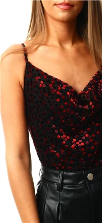 - Velvet polka detailing