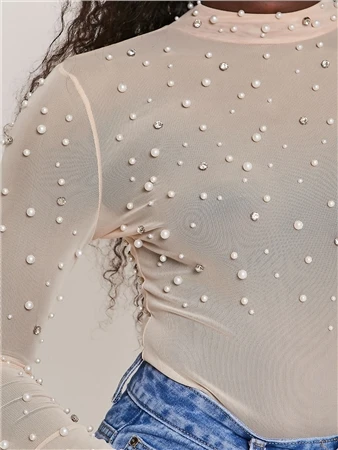 Make them stare this season in our beaut mesh bodysuit! Featuring mesh fabric, diamante and pearl detail and long sleeved, it’s a staple for the upcoming season