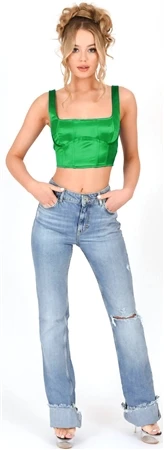 Saint Genies Petrol Baia Stretch Satin Cowl Neck Thong Bodysuit