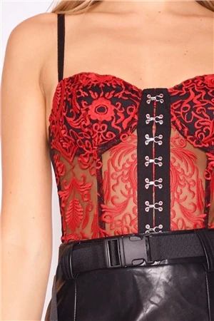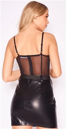 Saint Genies Cream Eleanor Pearl Diamante Mesh Long Sleeve Bodysuit