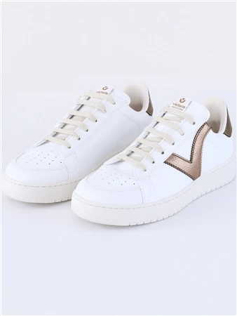 - Trainers made from smooth faux leather fabric. They have a touch of colour in the logo on the side and the heel